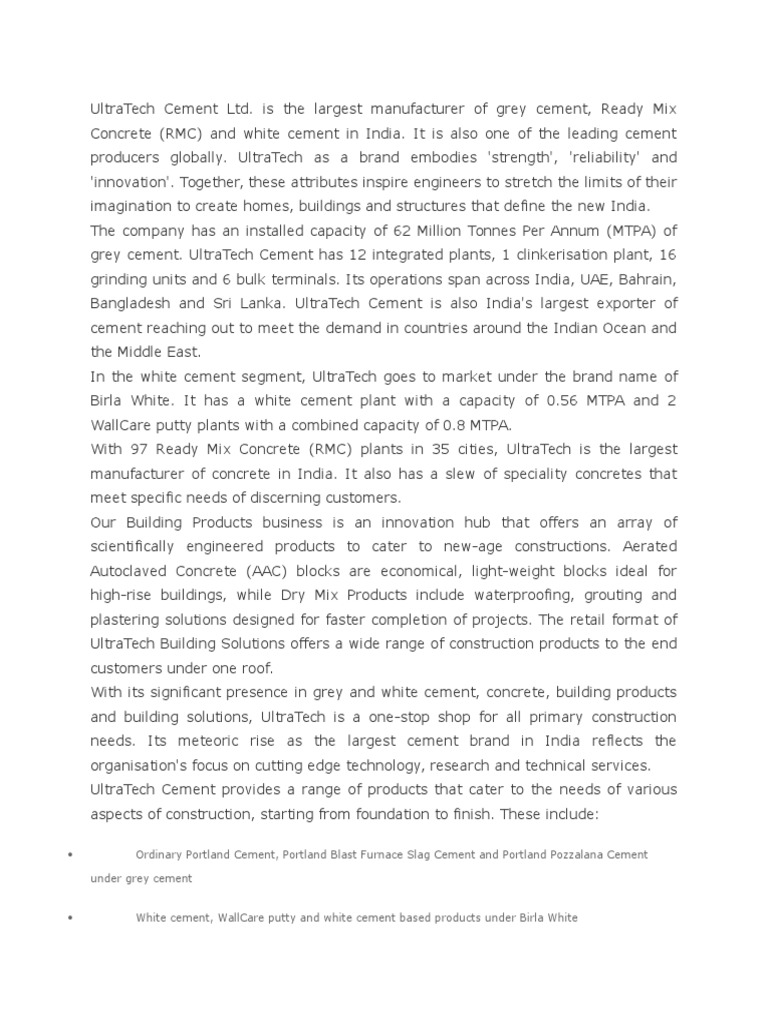 UltraTech Cement (UltraTech) had entered into a definitive agreement for (from the current 68.3 MT), making it the largest cement player in the Target Price Unchanged EPS FY16E* Unchanged EPS FY17E* Unchanged ... Fetch Here